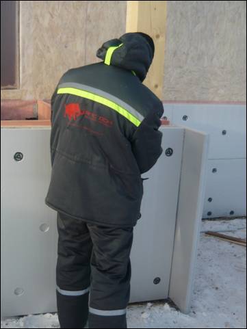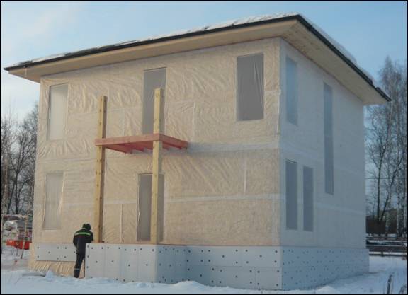 На ОСП монтируется гидроизоляция и ЭПП (экструдированный пенополистирол) от компании «Технониколь», толщиной 50 мм. ЭПП имеет закрытые поры, что препятствует проникновению в него влаги, обладает прочностью к механическим повреждениям и не горюч.