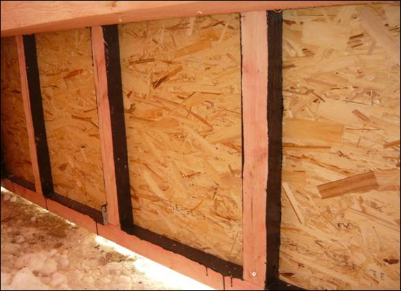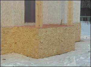 Деревянный каркас обшивается ОСП-3.