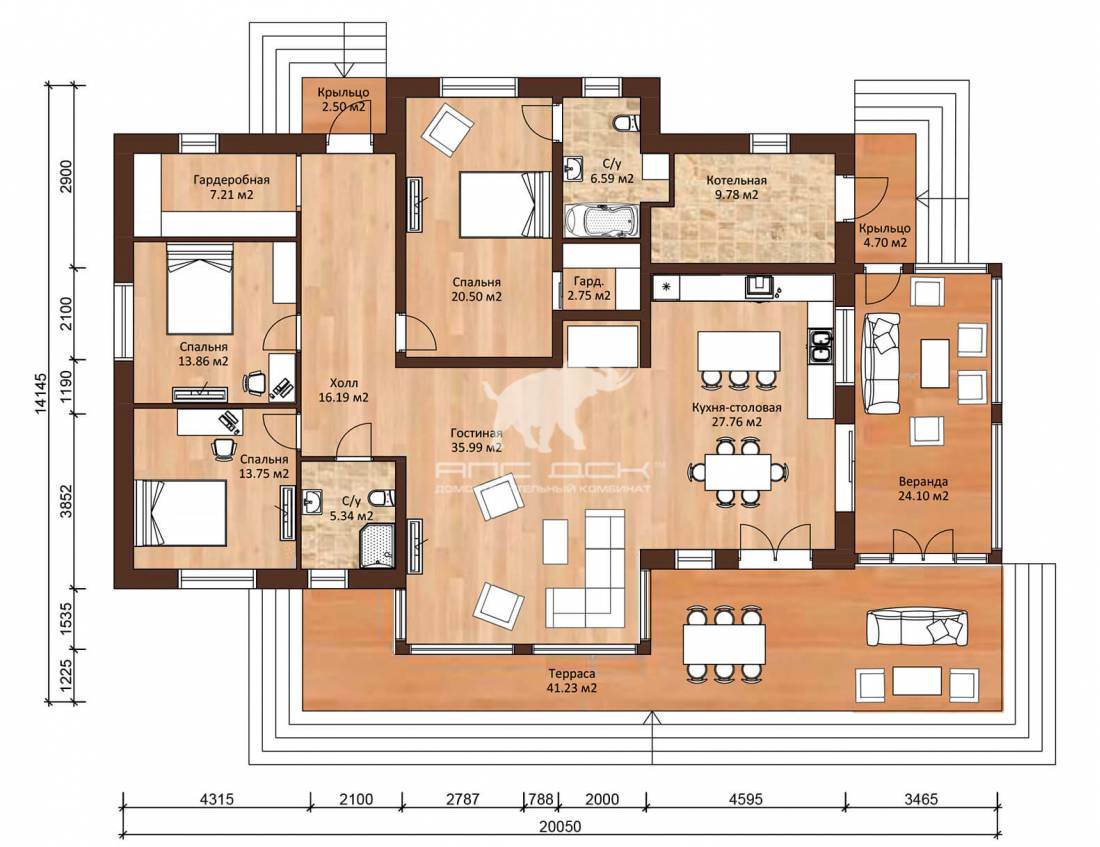 • Стропильная система: доска 100/ 50*200мм (сосна,ель)
