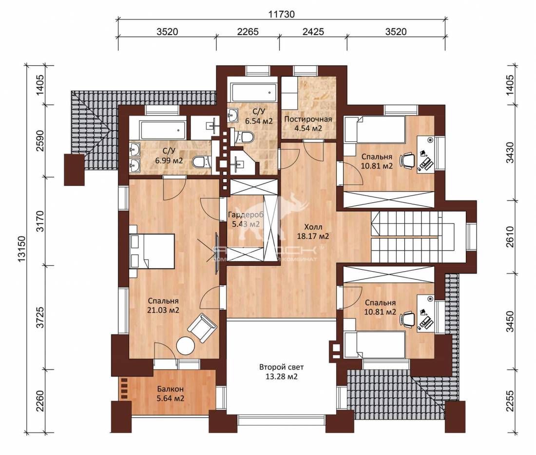 • Стропильная система: доска 100/ 50*200мм (сосна,ель)