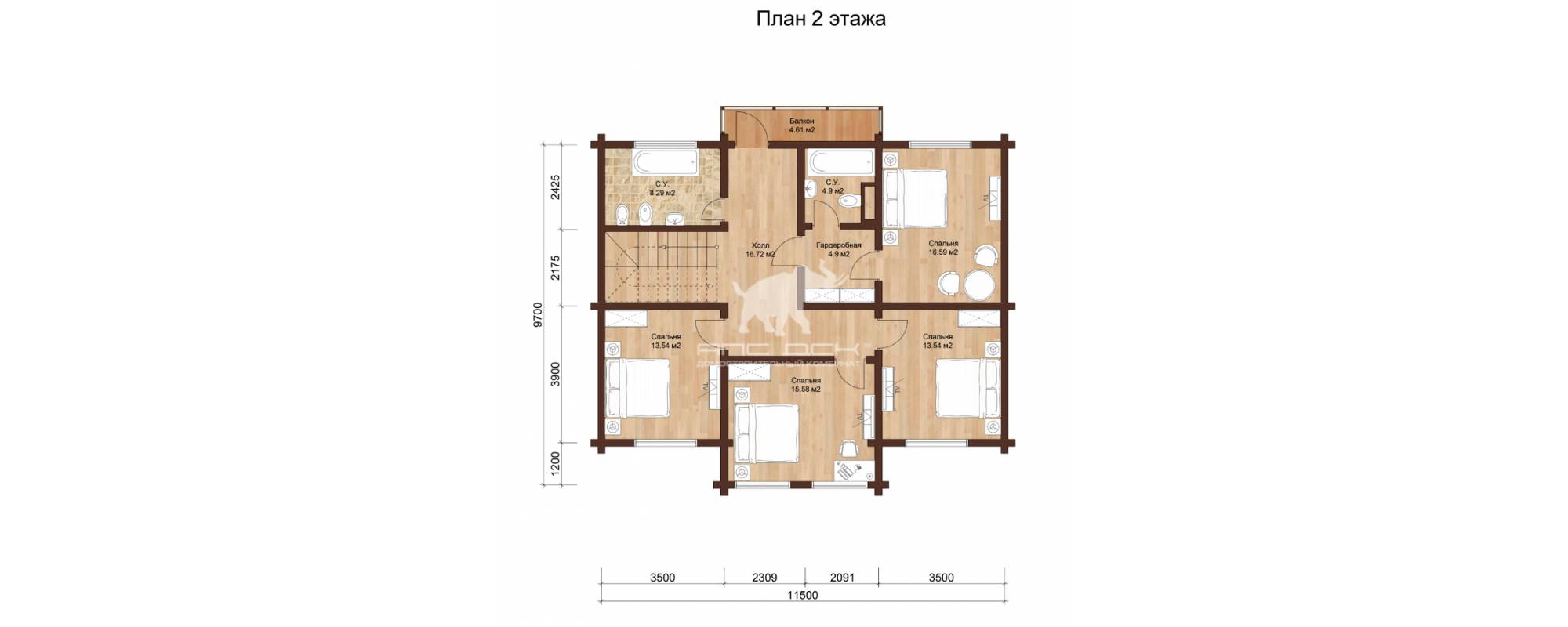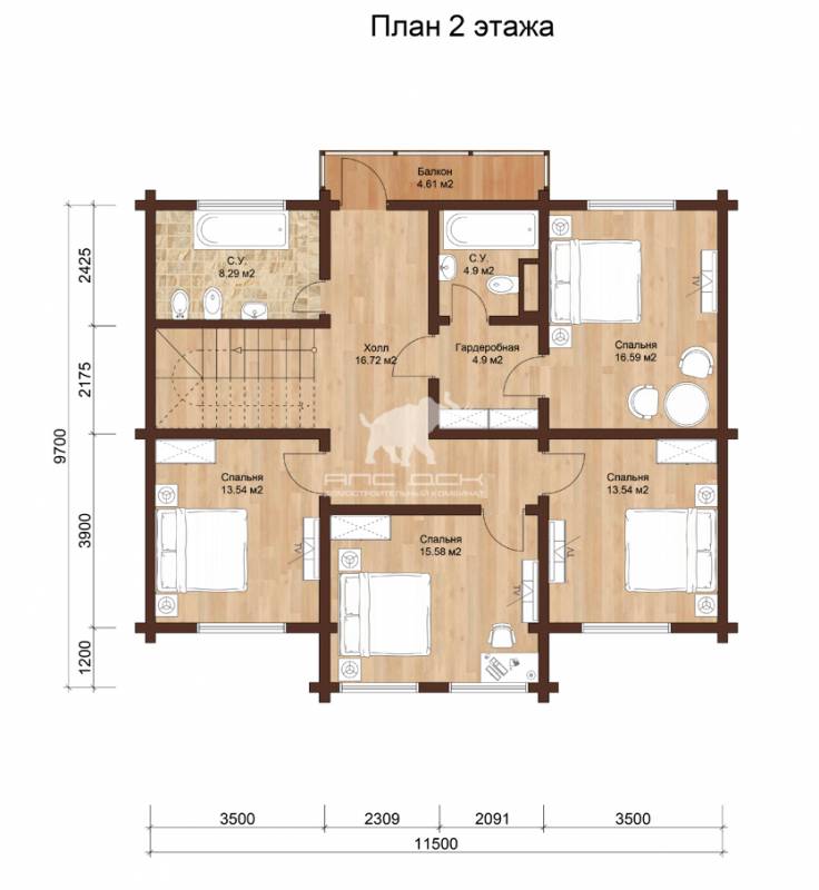 • Стеновой комплект из клееного бруса: 180(В)*200(Толщина) мм, (по ТУ, раскрой по проекту)