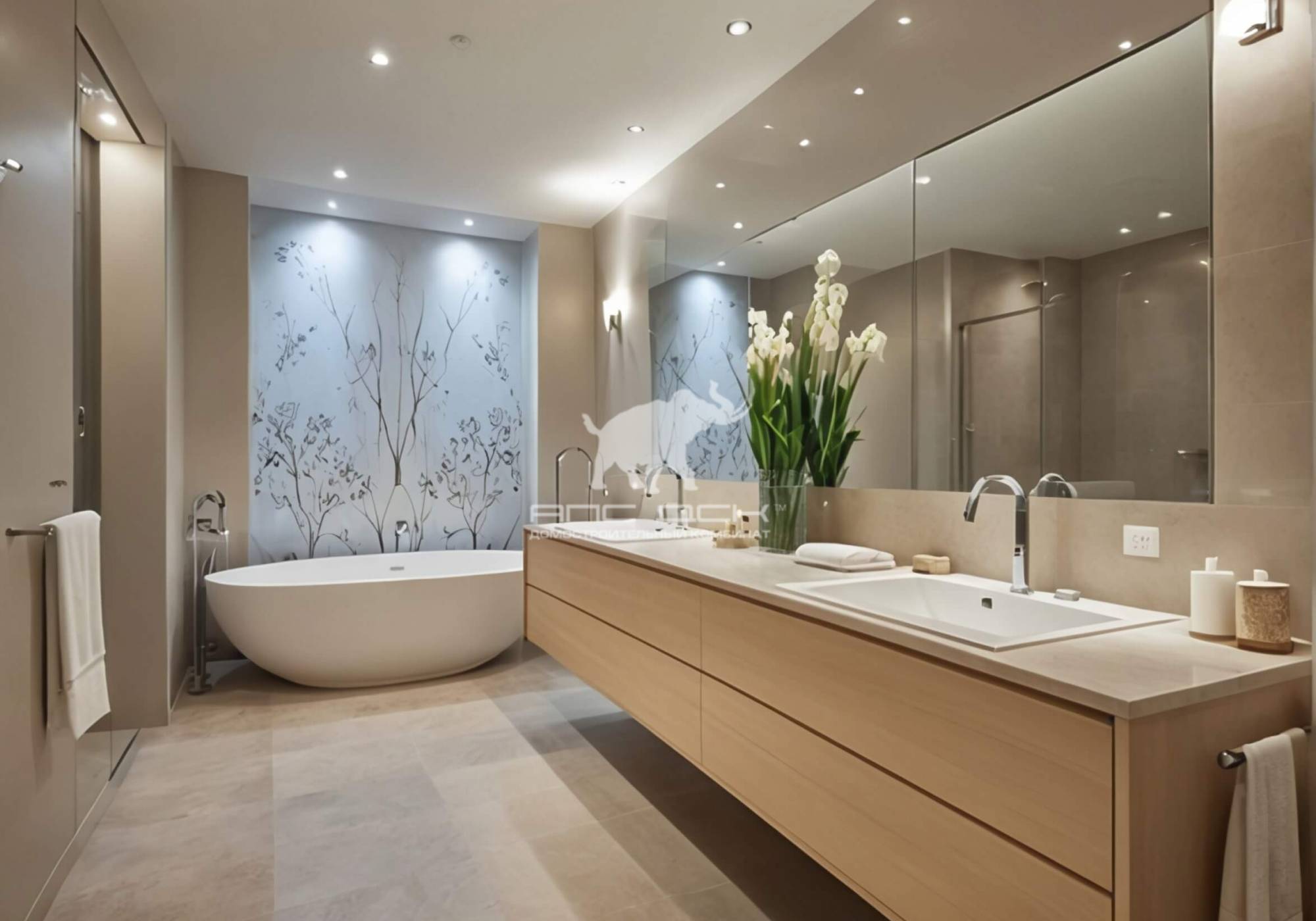 • Железо-бетонное межэтажное перекрытие: монолитная плита, двойное армирование ф12 «рифлен», виброусадка, марка бетона М350 Б25 (без тех.зазоров по сравнению с пустотелыми плитами)