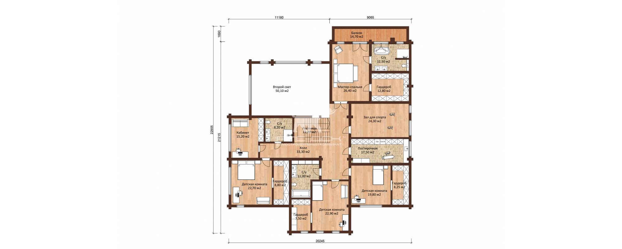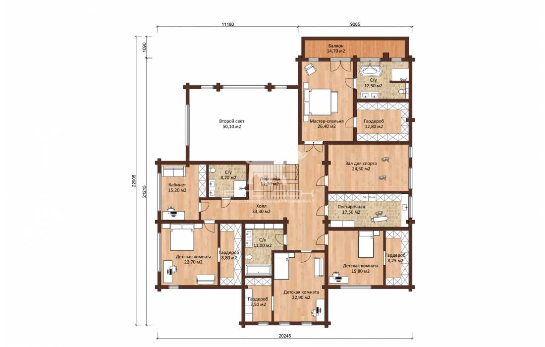 • Стеновой комплект из клееного бруса: 180(В)*200(Толщина) мм, (по ТУ, раскрой по проекту)