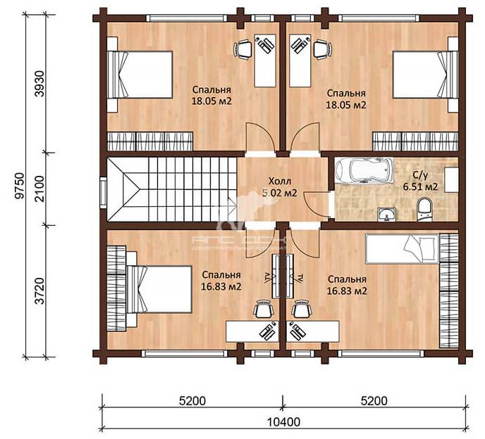 • Стеновой комплект из клееного бруса: 180(В)*200(Толщина) мм, (по ТУ, раскрой по проекту)