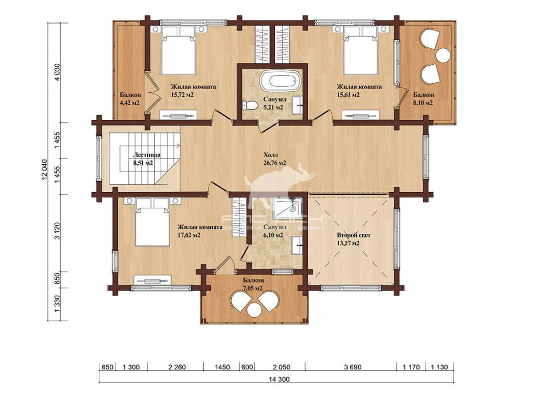 • Стеновой комплект из клееного бруса: 180(В)*200(Толщина) мм, (по ТУ, раскрой по проекту)