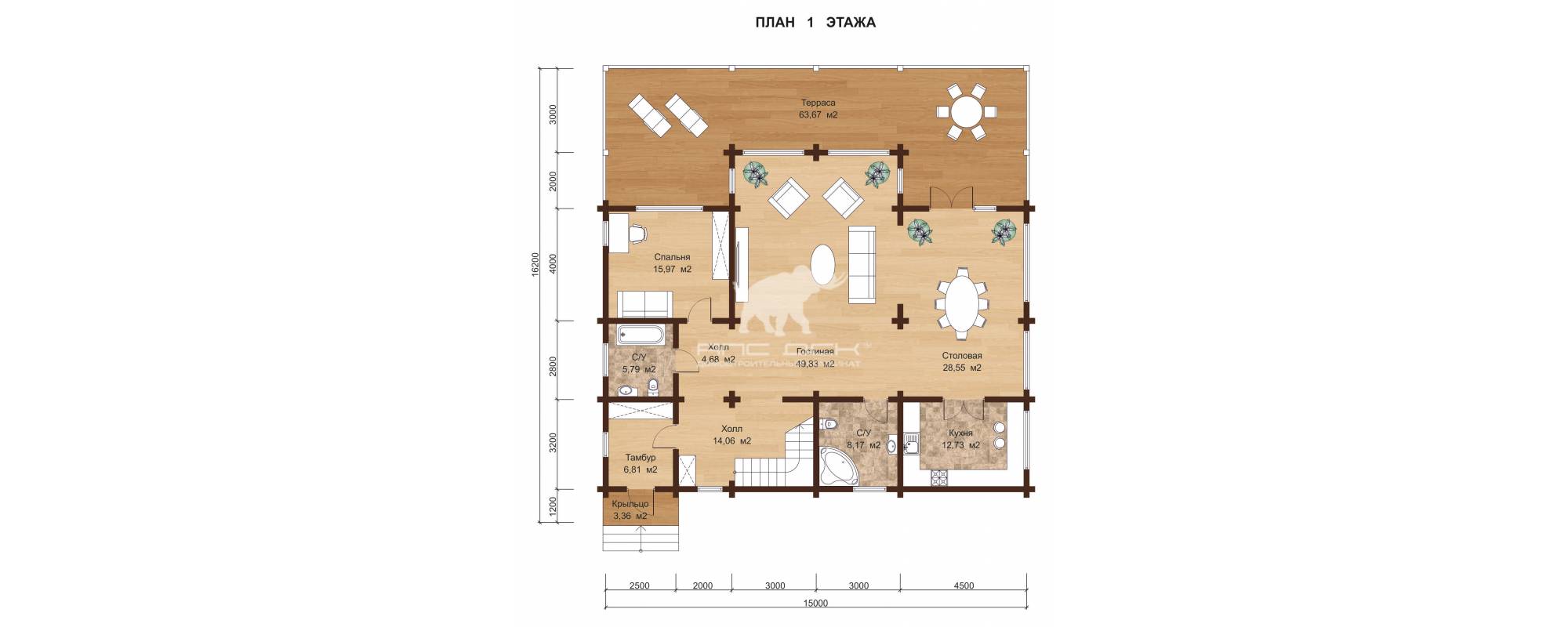 • Стропильная система: доска сухая строганная 100/ 50*200мм (сосна, ель)
