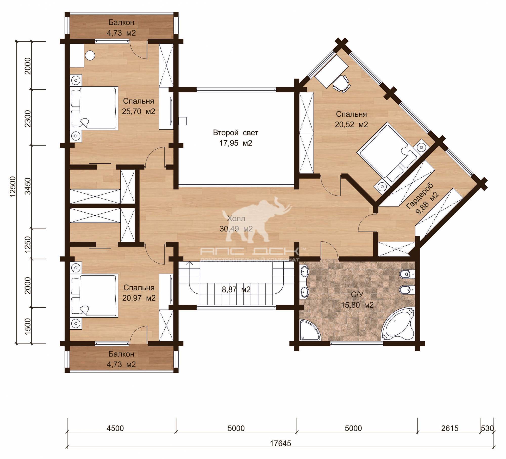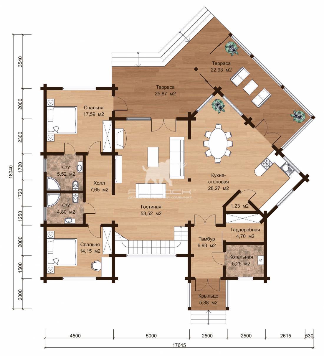 • Комплект из клееного бруса: 180*200мм (толщина), опц. 260*200 /245 толщина