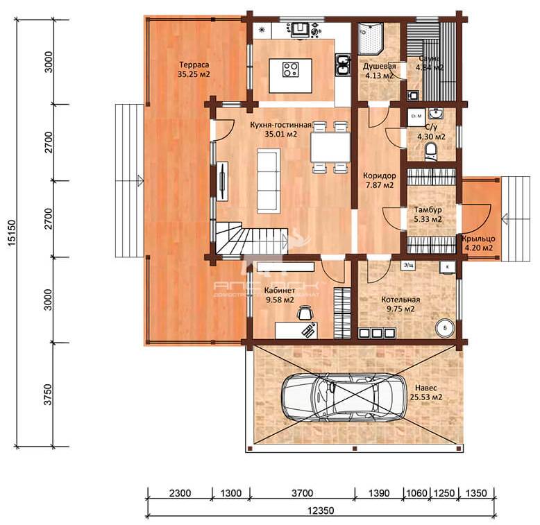 Высота потолка 1 этажа - 3,2 м