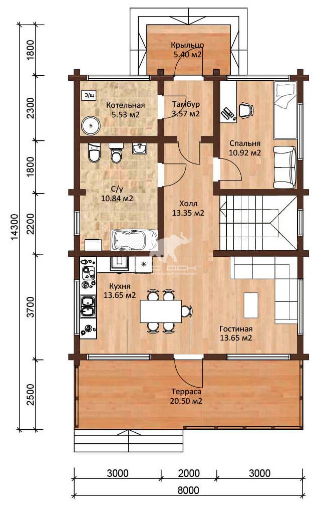 Комплект из клееного бруса: 180*200мм (толщина), опц. 260*200 /245 толщина