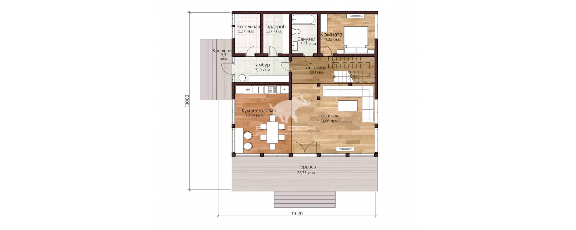• Собственное производство клееного бруса полного цикла, сертифицированное