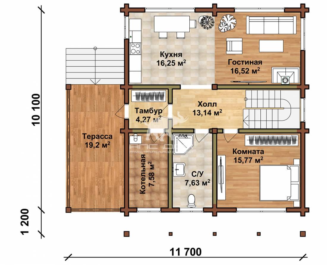 • Стропильная система: доска сухая строганная 100/ 50*200мм (сосна, ель)