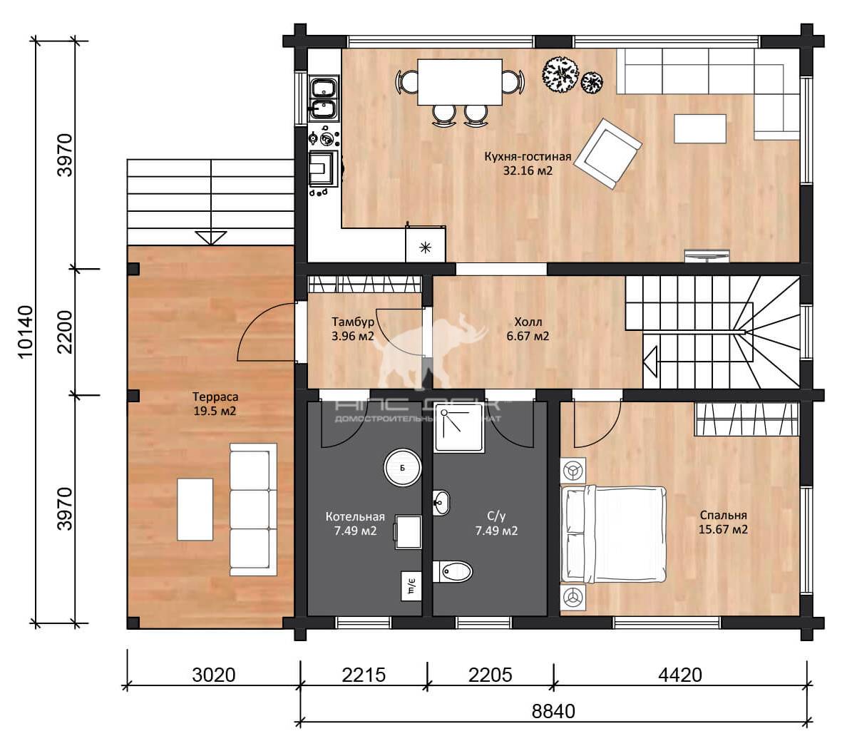 Зарезка чашек по проекту, пазы под оконные проемы, пакетирование, торцевое антисептирование