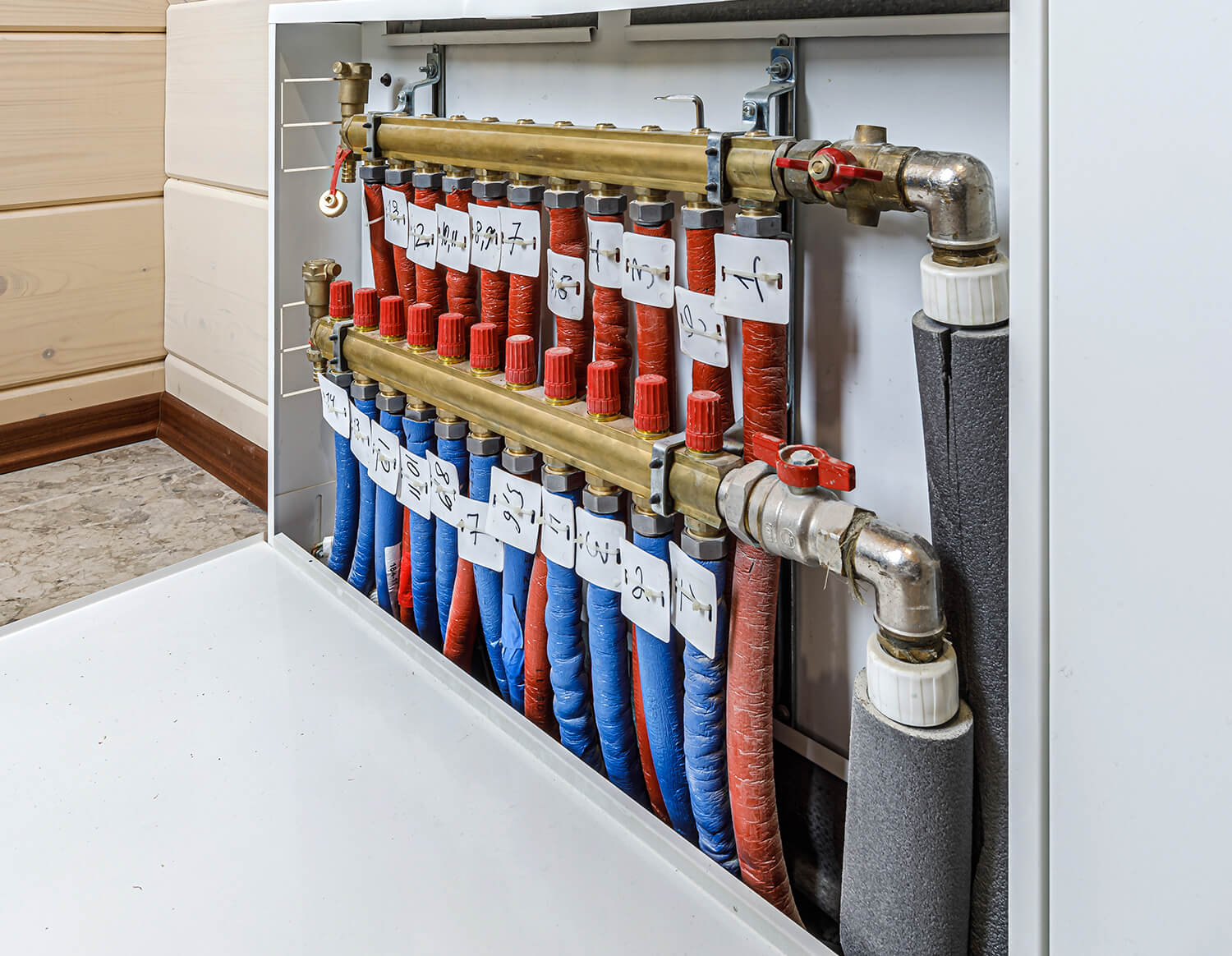 Такой метод разводки также позволяет скрыть коммуникации за внутренними перегородками, и оборудовать теплые полы. При этом соединения остаются на поверхности, поэтому риск утечки исключен.