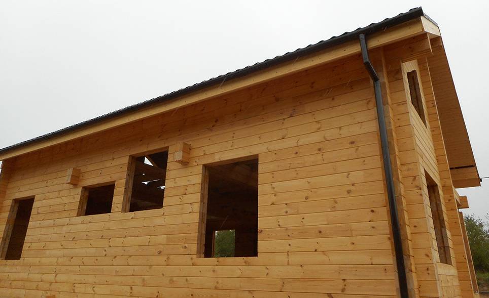 Такой материал, как клееный брус практически не дает усадки. Поэтому покрасочные работы можно выполнять буквально сразу после окончания строительства дома.