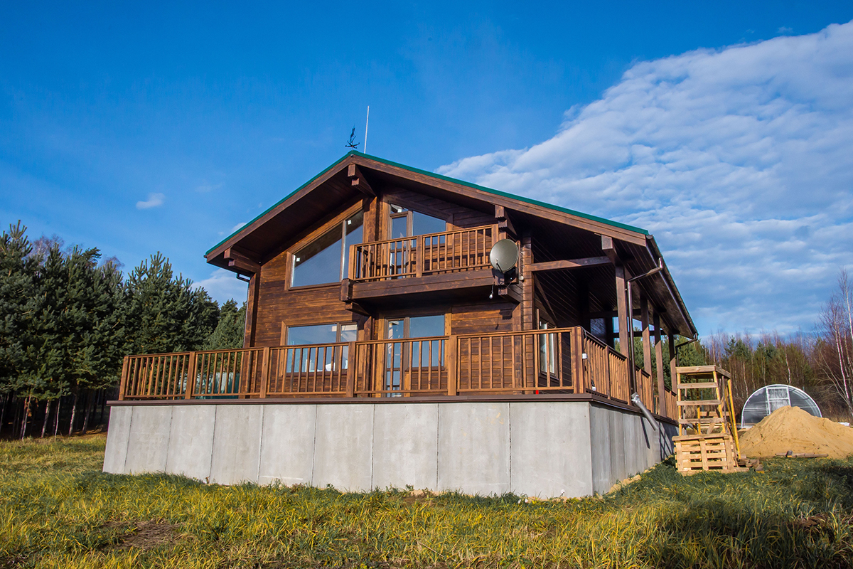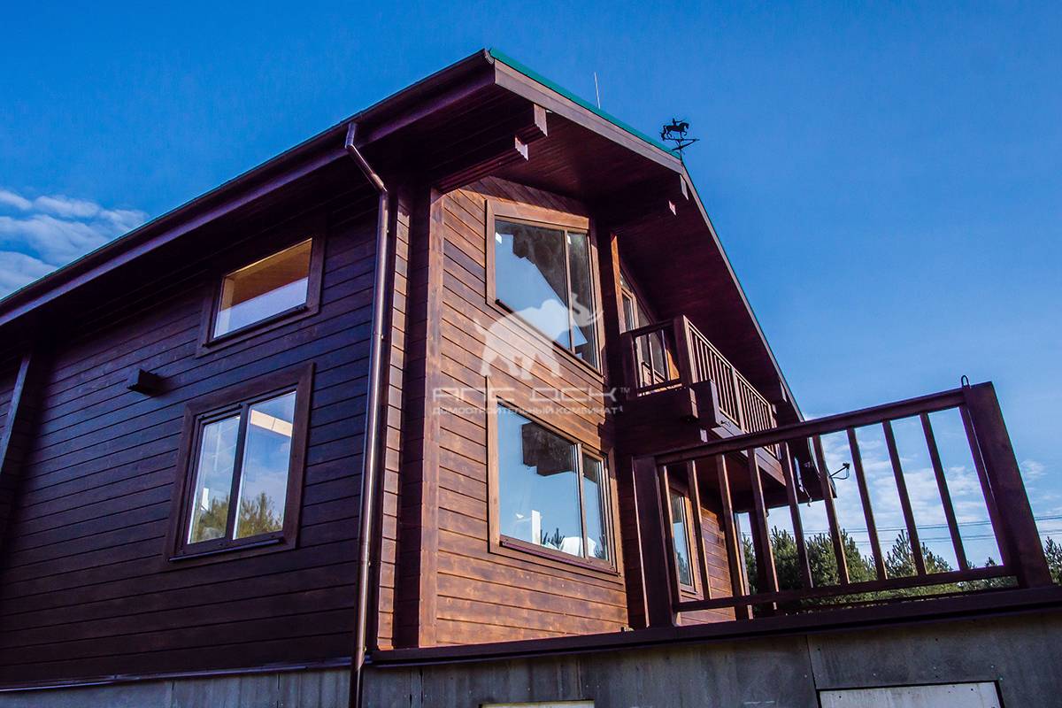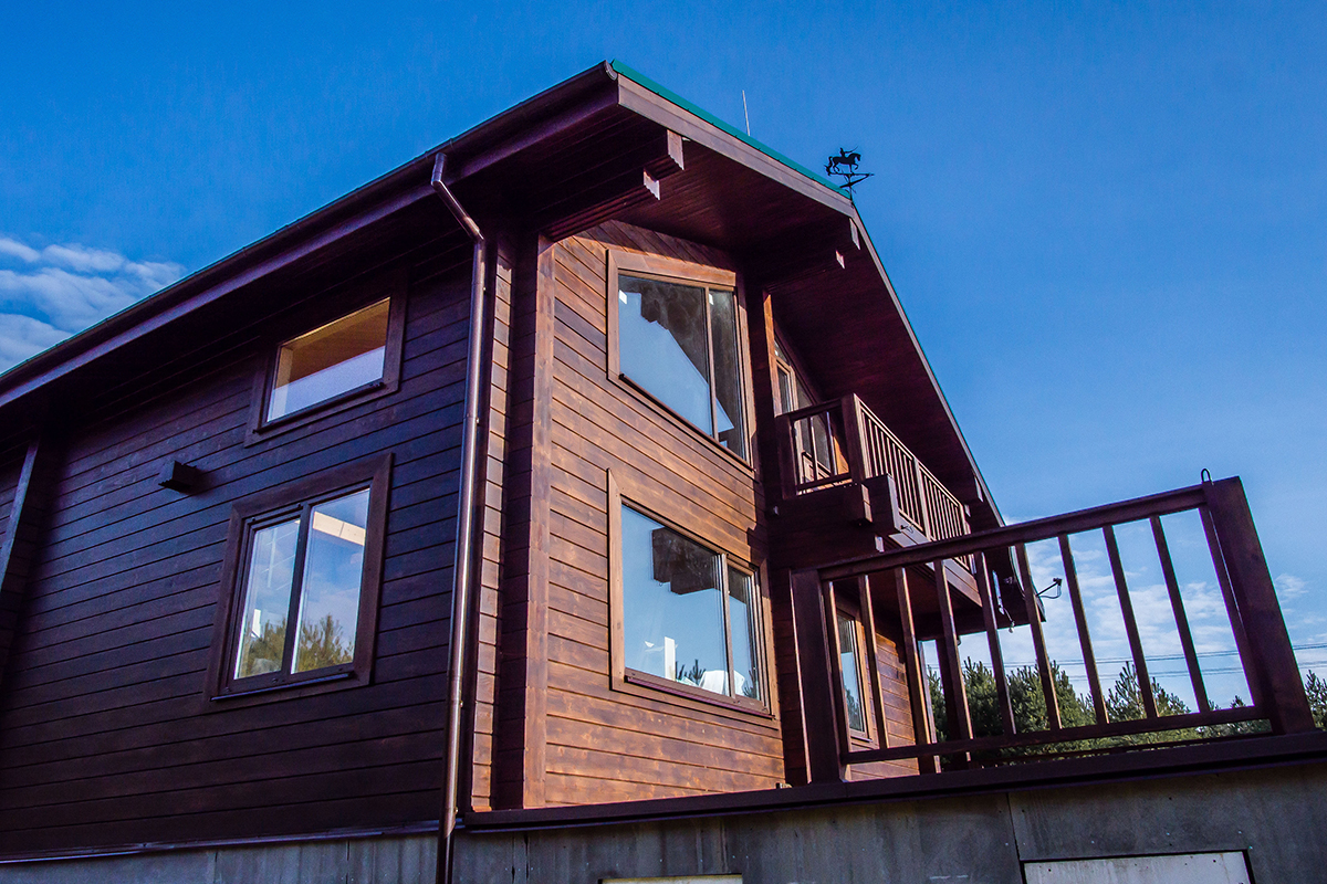 Окрашивание коттеджа нужно выполнять как можно быстрее после возведения здания. В противном случае, осадки и УФ-лучи приведут к выгоранию стен, и они потемнеют. Окрашивание дома из клееного бруса также служит для защиты клеевого шва.